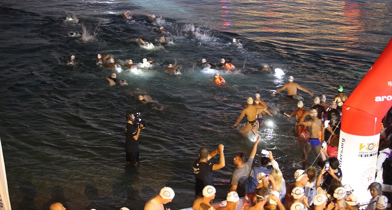 Üzerlerinde ışık bulunan yarışmacılar, görsel şölen oluşturdu. Yüzücüleri sahilde, kafe ve restoranlarda toplanan yüzlerce kişi ilgiyle izledi. Yarışı başarıyla tamamlayanlar, izleyenlerden alkış aldı.