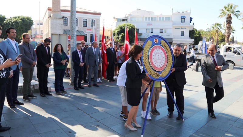 Arena Bodrum Haber – Sabah saatlerinde Bodrum Belediye Meydan’ında düzenlenen resmî törene; Bodrum Kaymakamı Bilgehan Bayar, Milletvekili Mehmet Yavuz Demir, İlçe Milli Eğitim Müdürü Bülent Aldal, Belediye Başkanı Ahmet Aras adına Başkan Yardımcısı Tayfun Yılmaz, öğretmen ve öğrenciler katıldı.