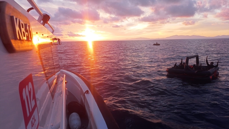 Ekipler, Yunanistan unsurlarınca Türk kara sularına itilen iki can salındaki 27 düzensiz göçmeni bota alarak karaya çıkardı.