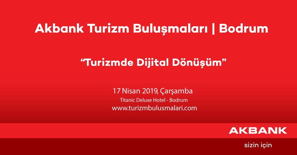 Akbank Turizm Buluşmaları 2019-2020 sezonunda turizm yatırımcıları, girişimciler ve sektörün önde gelen sivil toplum örgütlerinin katılımıyla Türkiye genelinde birçok farklı turizm bölgesinde gerçekleştirilecek. 2019 sezonunda Bodrum, Antalya, Marmaris ve Manavgat’ta yapılması planlanan toplantıların ilk etkinliği, Bodrum Titanic Deluxe Hotel’de 17 Nisan Çarşamba günü saat 12.00’de başlayacak. Gün boyu sürecek olan ve turizm ile ilgilenen herkesin davetli olduğu etkinliğe katılım ücretsiz olacak. Katılım için www.turizmbulusmalari.com adresinden online kayıt oluşturulabilecek.