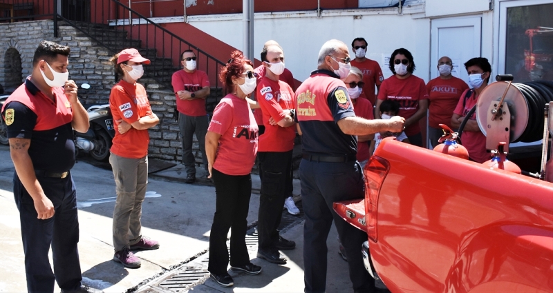 Arama Kurtarma Derneği (AKUT) Bodrum ekibinde görev yapan gönüllülere, yangına müdahale eğitimi verildi.