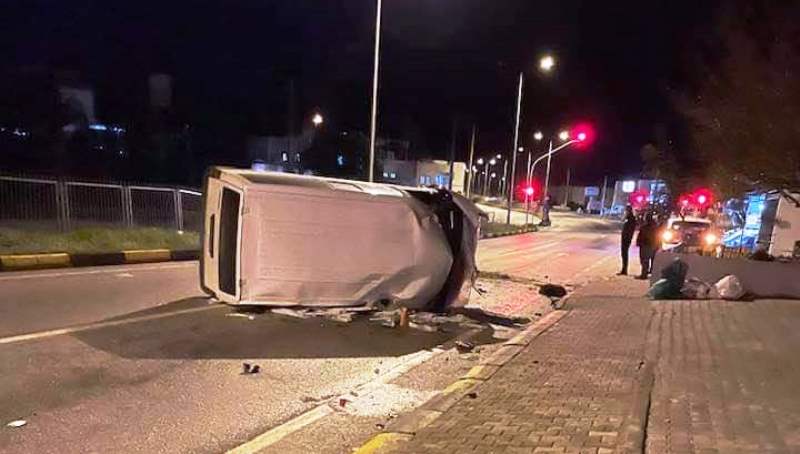 Kontrolden çıkan araç refüj korkuluklarına çarptıktan sonra yan yatarak sürüklenmeye başladı.