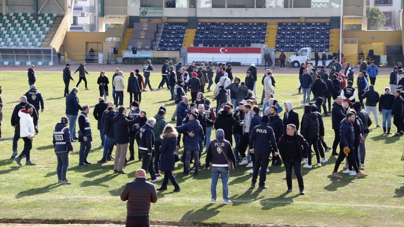 Kazanan takım futbolcuları sahada sevindiği sırada bir grup Düğerek Güneşsporlu taraftar sahaya girdi. Ardından iki takım taraftarları arasında yaşanan tartışma arbedeye dönüştü.