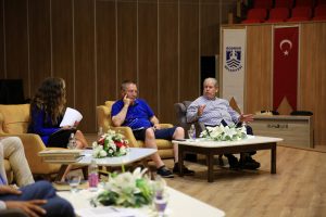 Söyleşide Başkan Yardımcısı İbrahim Akbaş, konuşmasına Bodrum Belediye Başkan Ahmet Aras’ın mesajını ileterek başladı. Akbaş, “Maalesef ciğerlerimizi yüreğimizi yakan Marmaris yangını 2 gündür devam ediyor. Başkanımız da kendileri Marmaris’te. Sizlere saygı ve sevgilerini sunuyorlar. Bu güzel etkinliğe katılım sağladığınız için gelecek nesillere örnek olacakları için çok teşekkürlerini sundular. Başkanımız Ahmet Aras, sanata sanatçıya kültürüne ve geçmişine sahip çıkıyor ve bunun somut adımlarla bir iz kalmasını istiyor. Hatta bizim ‘İz Bırakanlar’ diye belediye yayınımızdan çıkan bir kitabımız var. Bu kitabımızda Halikarnas’tan günümüze o kadar çok tarihimiz var ki o kadar çok anılarımız var ki onlardan bir tanesi de Amiral Turgut Reis’tir, Biz, Bodrum Belediyesi olarak her zaman geçmişimize sahip çıkıp bu geçmişimizi ilerleyen dönemlere aksettirmek için elimizden gelen desteği vereceğiz” dedi.