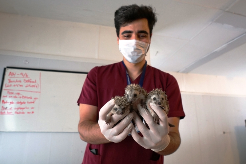 Veteriner hekimler tarafından ilk kontrolleri yapılan ve sağlıklı oldukları belirlenen 3 yavru kirpi koruma altına alındı.