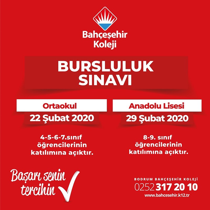 4.5.6.7.sınıfların katılımına açık olan Ortaokul Bursluluk Sınavı 22 Şubat’ta, 8. ve 9.sınıfların katılımına açık olan Lise Bursluluk Sınavı ise 29 Şubat’ta gerçekleşecek.