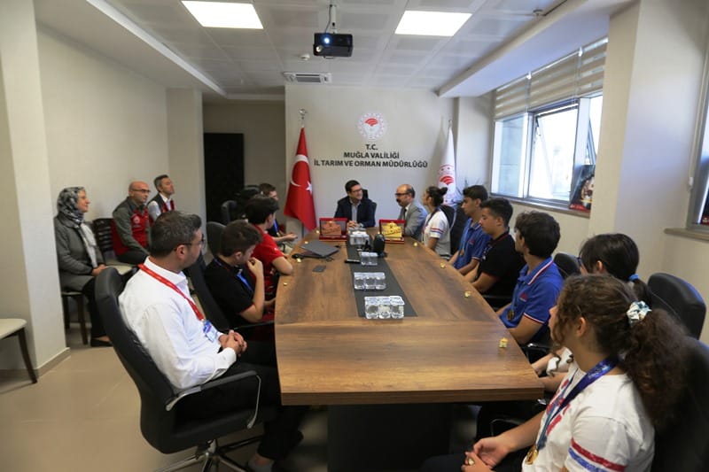 Arena Bodrum Haber – Festivalin Tarım Teknolojileri Yarışması’na hazırladıkları proje ile katılarak birincilik ödülünü alan 9 genç, ayağının tozuyla İl Tarım ve Orman Müdürü Barış Saylak’ı ziyaret etti.