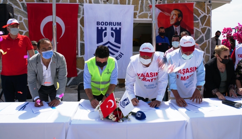 Bodrum Belediyesi’nin Akçaalan Mahallesi’nde bulunan Temizlik İşleri Müdürlüğü Evsel Atık Şefliği’nde gerçekleşen imza törenine Bodrum Belediye Başkanı Ahmet Aras, belediye başkan yardımcıları, Belediye İş Sendikası Muğla Şube Başkanı Ender Akbay, Sendika Genel Merkez Denetleme Kurul Başkanı Ali Haydar Özcan ve Disiplin Kurulu Üyesi Cem Özer, Belediye İş Sendikası İl Yönetim Kurulu Üyesi Mehmet Barut katıldı.