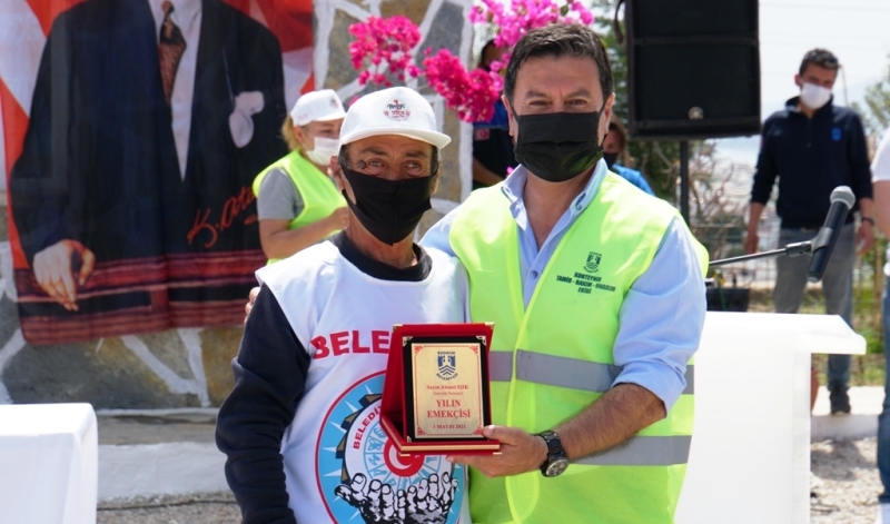 Konuşmaların ardından Bodrum Belediye Başkanı Ahmet Aras “Yılın Emekçisi” ödülü dolayısıyla Temizlik İşleri Müdürlüğü personeli Ahmet Işık’a plaket takdim ederken, Belediye İş Sendikası Muğla Şube Başkanı Ender Akbay ise Kültür ve Sosyal İşler Müdürlüğü personeli paramedik Hilal Aydın adına Melek Hastürk’e plaket takdim etti.