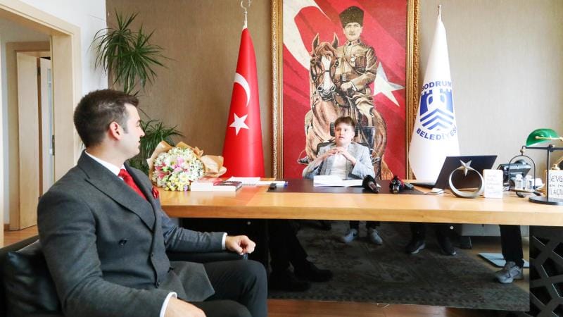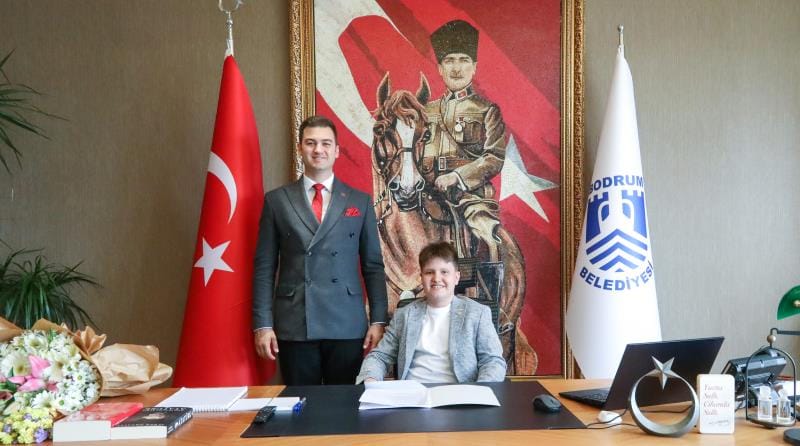 Bodrum Belediye Başkanı Tamer Mandalinci, 23 Nisan Ulusal Egemenlik ve Çocuk Bayramı dolayısıyla başkanlık koltuğunu ortaokul öğrencisi Yiğit Erdoğan’a devretti.