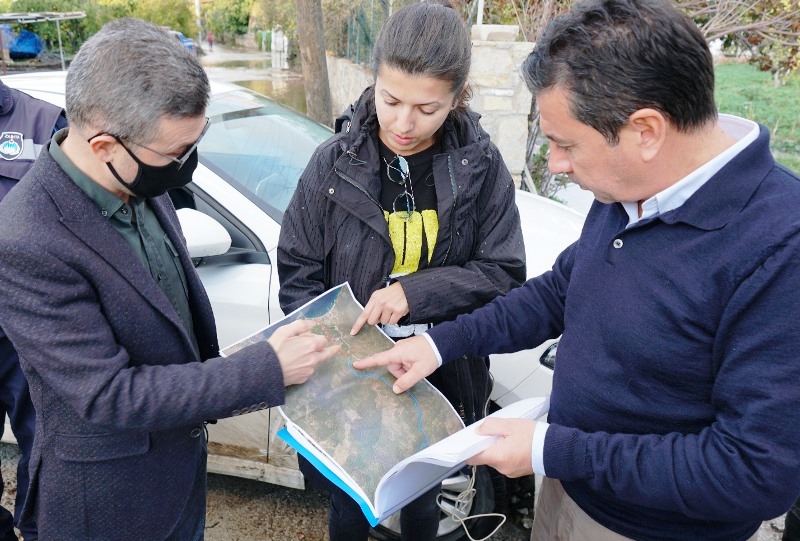 Ayrıca burada önümüzdeki günlerde uygun kesitli menfez çalışmaları başlatılacağı bildirildi. Mumcular Merkez 300. Sokak su taşkını yaşanan bölgede drenaj çalışması için Belediye Harita Birimi ekipleri ile gerekli ölçümler tamamlandı. Bahçeyakası’nda dere geçişlerinde düzenlemeler yapılırken, Yukarı Mazı’ da yağışta zarar gören dere kenarı ve yollarda temizlik ve düzenleme çalışması tamamlandı. Evlerin girişlerinin temizliği ve araç geçişi sağlandı.