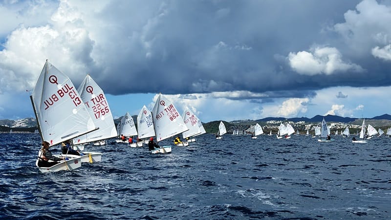 Arena Bodrum Haber – 389 minik yelkencinin yarıştığı yarışlarda, yelkenciler şampiyon olmak için kıyasıya mücadele ediyor.