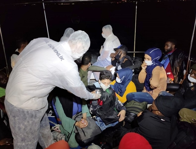 Muğla’nın Bodrum ilçesi açıklarında sürüklenen lastik bottaki 21 sığınmacı kurtarıldı.