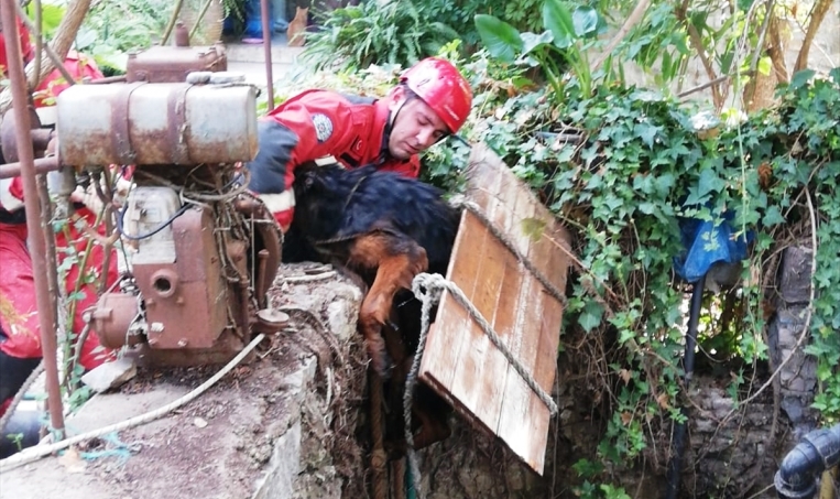Muğla’nın Bodrum ilçesinde su kuyusuna düşen köpeği itfaiye ekipleri kurtardı.