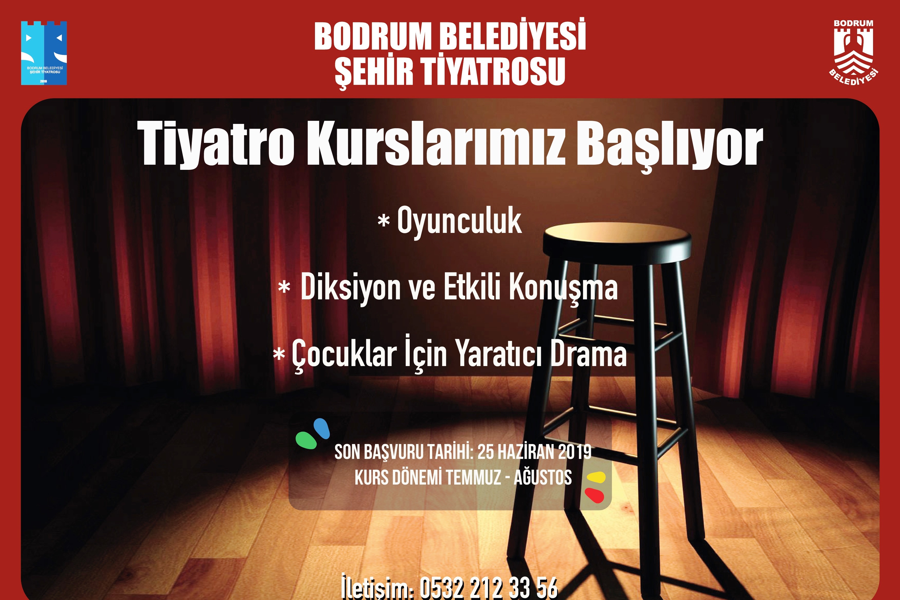 Bodrum Belediyesi Şehir Tiyatrosu sanatçıları, sanat ve bilgi birikimlerini geleceğin sanatçı adaylarına aktarabilmek amacıyla tiyatro kursları düzenledi. 27 Mart 2019’da birinci yılını dolduran Şehir Tiyatrosu, yaz sezonunda oyunculuk, diksiyon ve etkili konuşma, çocuklar için yaratıcı drama olmak üzere üç ayrı dalda kurs açıyor. Herodot Kültür Merkezi’nde verilecek kurslarla, Bodrum’da yaşayan ve tiyatroya gönül vermiş genç, büyük ve çocukların bir kez daha tiyatro ile buluşturulması hedefleniyor.