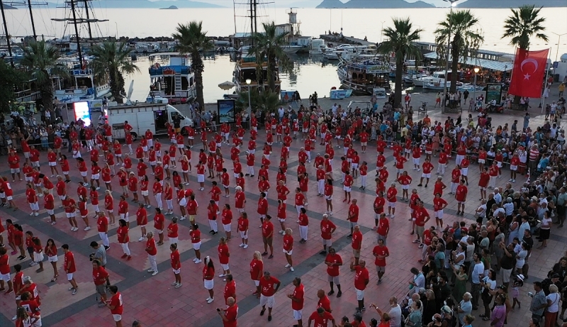 Muğla’nın Bodrum ilçesinde yüzlerce kişi, aynı anda zeybek oynadı.