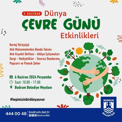 Arena Bodrum Haber – Bodrum Belediyesi tarafından çevre duyarlılığına dikkat çekmek ve farkındalık oluşturmak için 6 Haziran Perşembe günü Belediye Meydanında gerçekleşecek etkinliklerle Dünya Çevre Günü kutlanacak.