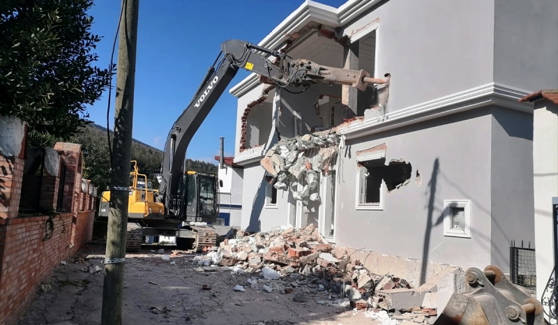 Küçükbük Mahallesi’nde bulunan sitedeki villanın zemin ve birinci katında tespit edilen kaçak ve ruhsatsız ilavelerde de ekiplerin denetiminde mülk sahibi tarafından yıkım işlemi başlatıldı.