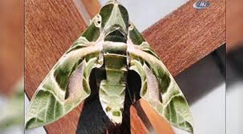Bodrum ilçesinde, kamuflaj desenini andıran kanatlara sahip olan ‘Daphnis Nerii’ diğer adıyla mekik kelebeği görüldü.