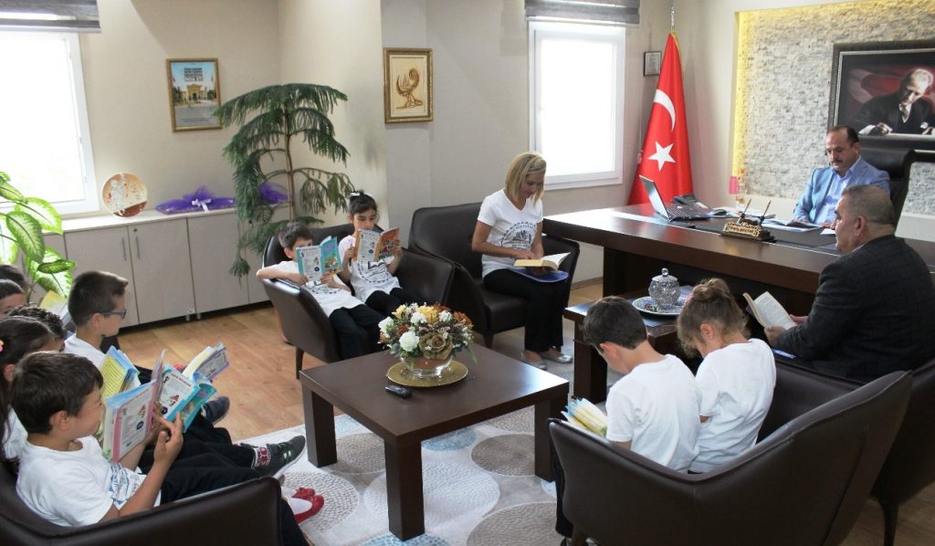 İlçe Milli Eğitim Müdürü Emin Geçin’i de proje kapsamında ziyaret eden çocuklar, ilçe müdürü ile makam odasında kitap okudular. Okul Müdürü Ediz Çetin ve proje sorumlu öğretmeni Zeynep Aydın’ın da katıldığı ziyarette Emin Geçin’e proje anlatılarak yapılanlar hakkında bilgiler verildi.