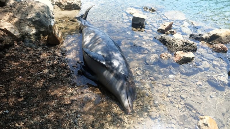 Muğla’nın Bodrum ilçesinde sahile vurmuş ölü yunus bulundu.