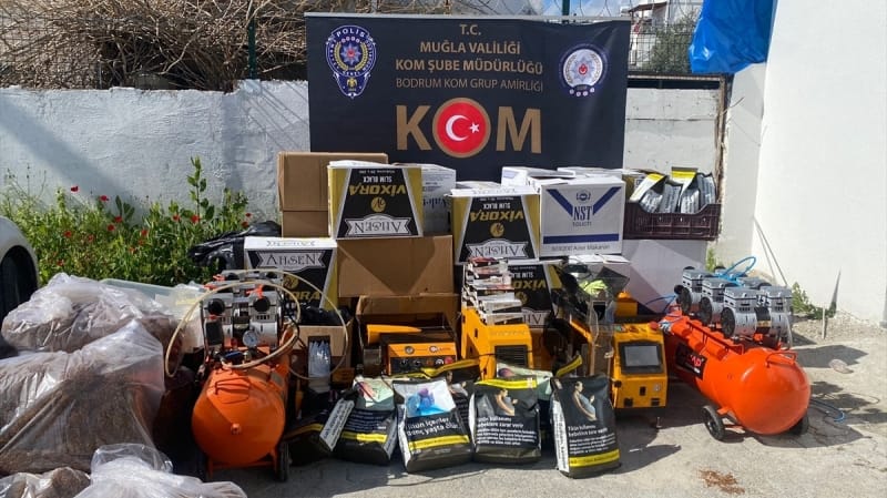 Şüphelilerin adreslerinde yapılan aramalarda, 4 ruhsatsız tabanca, 4 şarjör, 140 fişek, 5 gram skunk, 2 gram sentetik uyuşturucu, 2 gram esrar, 2 sanayi tipi sigara sarma makinesi, 2 kompresör, 60 bin sigara, 150 bin boş makoran ve çok sayıda gümrük kaçağı ürün ele geçirildi.