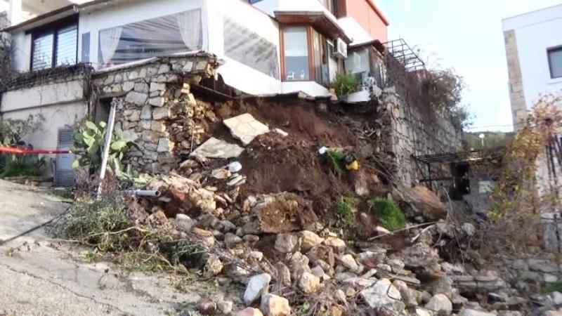 Muğla’nın Bodrum ilçesinde yağışın ardından istinat duvarı yıkılan evdeki vatandaşlar tahliye edildi.