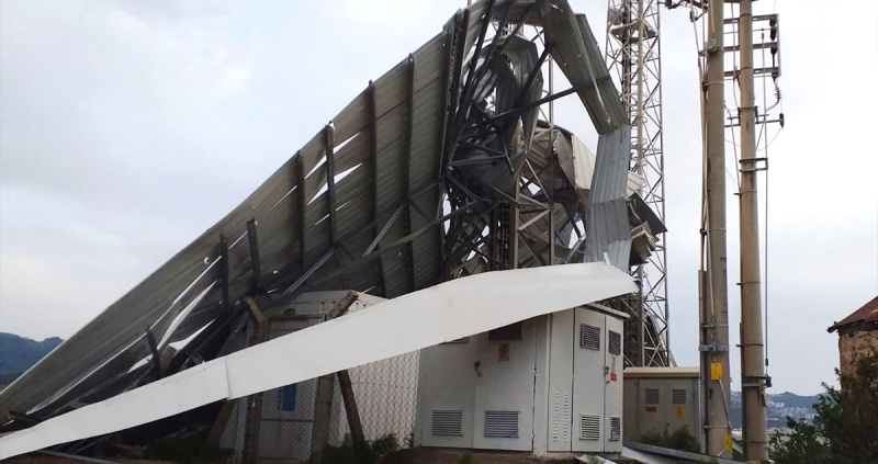 Fırtına nedeniyle Yalıkavak Mahallesi’ndeki bir otel lojmanının sac kaplı çatısı uçtu. Yaklaşık 12 metre eninde, 25 metre uzunluğundaki çatı, bölgede baz istasyonu ve enerji nakil hattı direklerinin bulunduğu tepeye uçtu.