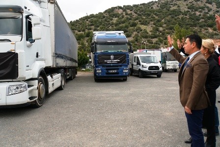 Bodrum Belediyesi tarafından başlatılan kampanya sonrası hazırlanan 2 TIR akşam saatlerinde Muğla’ya hareket etti.