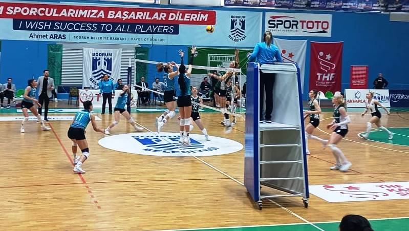 Arena Bodrum Haber – Ligin ilk yarısında 3-0 yenildiği güçlü rakibini yenerek yükselme grubuna bir adım daha yaklaşan “Denizin İncileri” Bodrumlu voleybol severlere sevinç yaşattı.