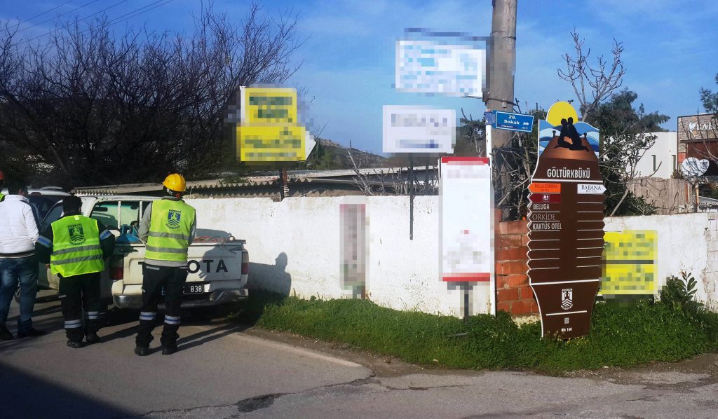Bodrum Belediyesi ekipleri son bir yıl içerisinde yarımada genelinde 250’ye yakın izinsizce asılmış reklam tabelaları ve yönlendirme levhalarını kaldırarak görüntü kirliliği ile mücadele etti.