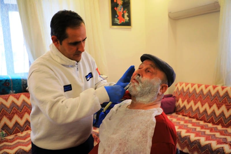 Muğla Büyükşehir Belediyesi Ramazan Bayramı öncesi ihtiyaç sahibi, engelli ve yatağa bağımlı vatandaşların tıraş ve kişisel bakım ihtiyaçlarını karşılayarak yanlarında oluyor