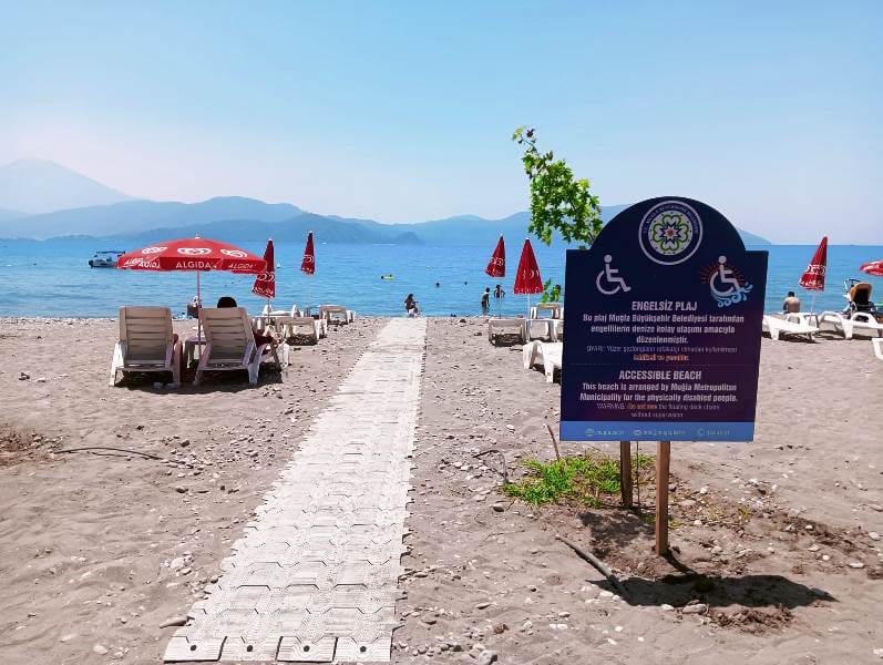 Muğla Büyükşehir Belediyesi’nin il genelinde oluşturduğu Engelsiz plajlar Bodrum ilçesinde Kumbahçe Halk Plajı, Gümbet Halk Plajı, Bitez Halk Plajı, Ortakent Yahşi Halk Plajı, Turgutreis Halk Plajı, Gündoğan Halk Plajı, Türkbükü Halk Plajı, Datça’da Palamutbükü Halk Plajı, Taşlık Halk Plajı, Hastanealtı Halk Plajı, Orcey Otel Önü Halk Plajı, Karaincir Halk Plajı, Ula ilçesinde Akyaka Halk Plajı, Köyceğiz ilçesinde Ekincik Halk plajı, Ortaca ilçesinde Sarıgerme Halk Plajı, Dalaman ilçesinde Kille ve Sarsala Halk Plajı, Milas ilçesinde Ören, Güllük, Boğaziçi Halk Plajı, Fethiye ilçesinde Akmaz, İnlice ve Büyüksamanlık Halk Plajı.