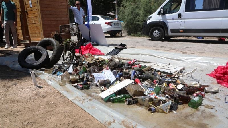 Yaklaşık bir saat süren deniz dibi temizliği çalışmasında, cam ve metal şişeler ile plastik, metal atıklar, balıkçı ağları ve araç lastiklerinden oluşan 200 kilograma yakın atık kıyıya çıkarıldı. Farkındalık yaratması için kıyıda bir süre sergilenen atık malzemeler, ekipler tarafından ayrıştırılarak Bodrum Belediyesi 1. Sınıf Atık Getirme Merkezi’ne götürüldü.