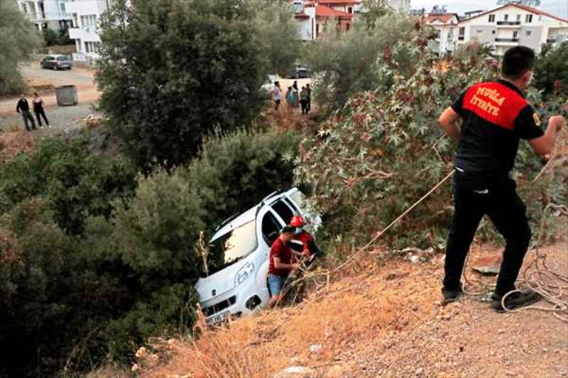 Arena Bodrum Haber – İbrahim Açıkgöz idaresindeki 27 AHD 006 plakalı araç, Patlangıç Mahallesi’nde yokuş çıktığı sırada geriye giderek dereye düştü.