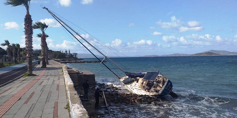 Hızı yer yer 45 knot’a ( yaklaşık 65 km ) ulaşan fırtına dolayısıyla Bodrum’daki bazı tekneler hasar gördü.