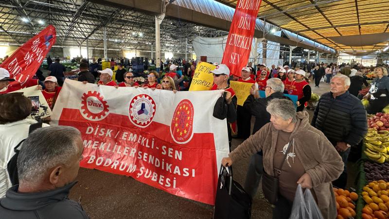 Burada yapılan basın açıklamasını DEV Emekli-Sen Bodrum Şube Başkanı İbrahim Uzun okudu. Açıklamada; yıllarca çalışarak ülkenin değerini üreten emeklilerin bugün açlık sınırının altında yaşamaya mahkûm edildiği vurgulandı.