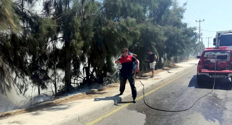 Bodrum’da cadde kenarındaki ağaçlık alanda çıkan yangın, büyümeden söndürüldü.