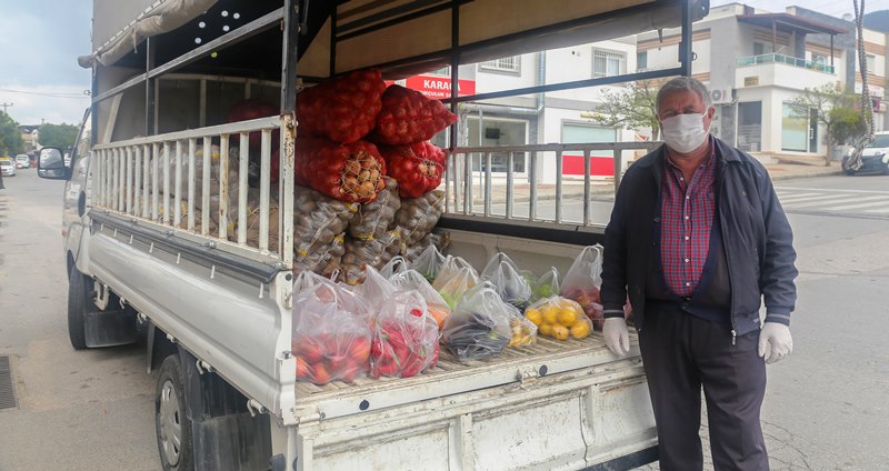 Bodrum’da geçici olarak sokağa çıkmaları kısıtlanan 65 yaş ve üstü olmak üzere, semt pazarlarına gelemeyen vatandaşlar için seyyar pazarcılar göreve başladı.