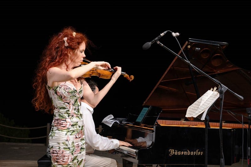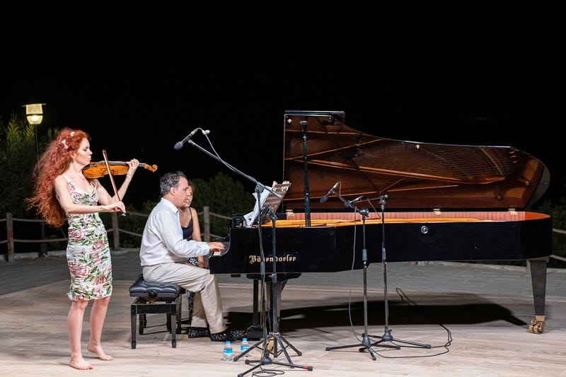 21.Gümüşlük Müzik Festivali kapsamında, Zefirya Kültür ve Sanat Merkezi’nde düzenlenen gecede, Piyanist Michael Bulychev-Okser ve Kemancı Miriam Davis ikilisi, programa W.A. Mozart’dan seçtikleri, “Keman Konçertosu No. 5, La Majör, K. 219 – 1. Bölüm” adlı eserle başladı. Ardından sanatçılar, N. Paganini’den, “Caprice No. 17, Op. 1” adlı yapıtı icra etti. Sonrasında Shor – Pletnev’in bir bestesi olan, “Keman Sonatı, Si minör 3. bölüm” çalındı. İkili, bu eserin ardından F. Chopin’in, “Scherzo No. 2, Op. 31” adlı eserini izleyicinin beğenisine sundu. Program Michael Bulychev-Okser’ın solo icrası ile devam etti. Sanatçı, J. Brahms’ın, “Keman Sonatı No. 3, Re minör, Op. 108”adlı yapıtını seslendirdi. Programa ara verilmeden sahneye alkışlarla Türk klasik müzik dinleyicisinin yakından tanıdığı Piyanist Gülsin Onay geldi. Zefirya Kültür ve Sanat Merkezi’nin sahnesinde yerini alan Piyanist Onay, Bodrumlu sanatseverlere L. v. Beethoven’ın, “Piyano Sonat No. 14 Do diyez minör, Op. 27, No. 2” başlıklı yapıtını seslendirdi. Gecenin sonunda izleyici için bis yapan Gülsin Onay, F. Chopin’den, “Nocturne Op. 48 No 2” başlıklı yapıtı seslendirdi. Onay izleyicinin alkışları arasında geceyi sonlandırdı.