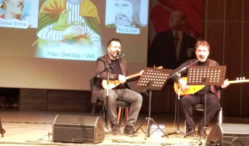 Konser, günün anlam ve önemine dair bir slayt ve dernek yönetim kurulu üyesi Nilgün Kösedağ’ın yaptığı konuma ile başladı. Nilgün Kösedağ konuşmasında “Aşkın, kardeşliğin, sevginin, barışın, adaletin ve hoşgörünün ışığını Anadolu’dan tüm evrene sunan erenlerimiz, pirlerimiz; ser çeşmemiz Hacı Bektaş Veli, Yunus Emre ve Ahi Evran’ımız, dün olduğu gibi bugün de hem yaralarımıza merhem hem de talip olana rehber olmaya devam ediyorlar.