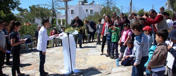 Öğrencilerin de Halikarnas Balıkçısı’nın kitaplarından alıntıları okuduğu etkinlikte üzerinde Cevat Şakir’in resmi ve ‘Merhaba Çocuklar’ yazılı pasta kesildi, mezarına çiçek bırakıldı.