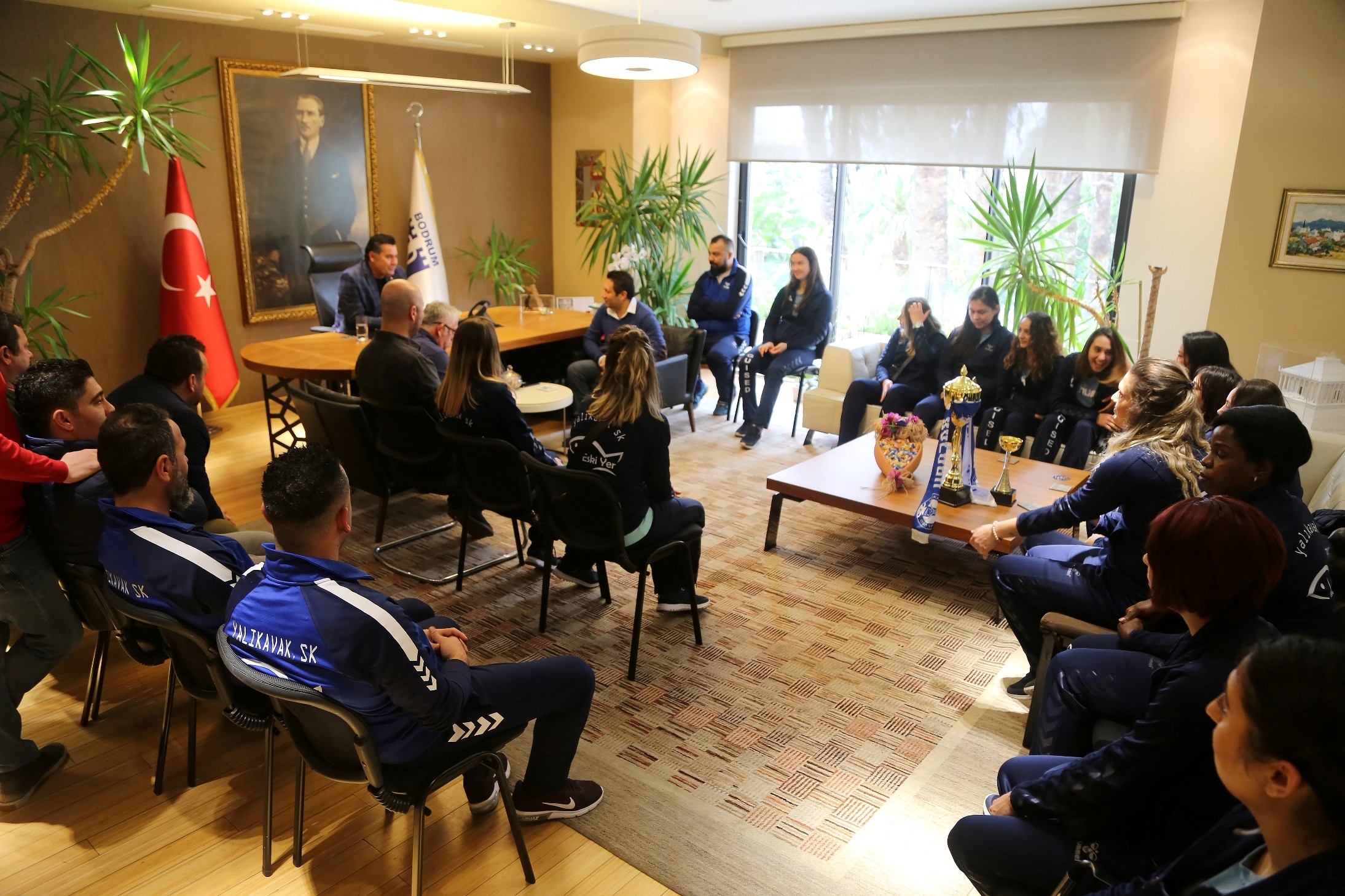Bodrum’a hentbol sahalarında Süper Lig heyecanını yaşatan Yalıkavak Spor Kulübü Hentbol Takımı oyuncuları ve yöneticileri, Bodrum Belediye Başkanı Mehmet Kocadon’u makamında ziyaret ederek destekleri için kendisine teşekkür etti.