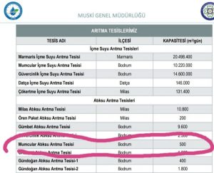 MUSKİ’nin internet sitesinde Mumcular Arıtma Tesisi’nin kapasitesinin günlük 500 m3 olduğu belirtilmiştir. Bu da yaklaşık 2.500 nüfusa eş değerdir.