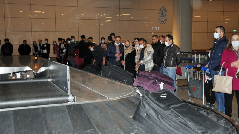 Çiçek verilip lokum ikramında bulunulan turistler, tatil yapacakları otellere hareket etti.