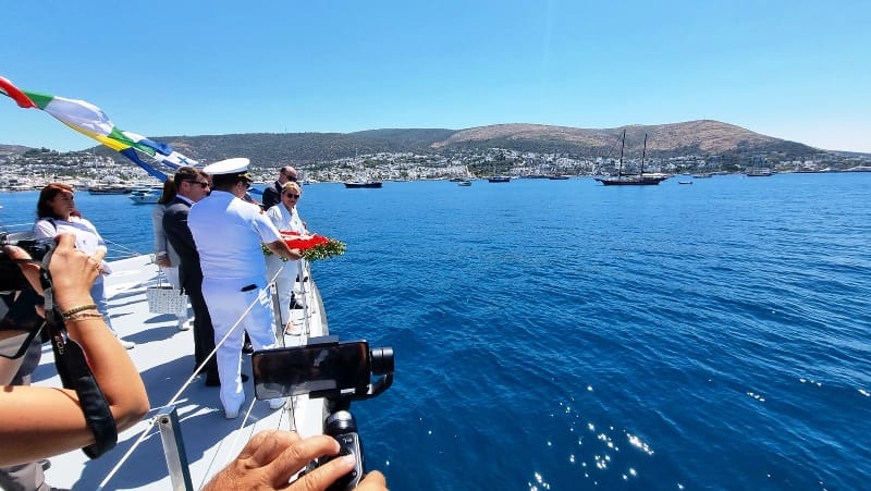 Törenin ardından protokol, Sahil Güvenlik Komutanlığı’na ait tekneyle açılarak Mustafa Kemal Atatürk ve şehit denizcilerin aziz hatıraları anısına hazırlanan çelengi denize bıraktı.