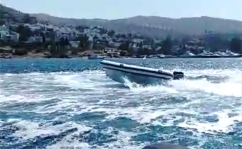 Arena Bodrum Haber – Bodrum ilçesinde kaptanı denize düşen sürat botunun etrafında dönmesi cep telefonu kamerasıyla görüntülendi.