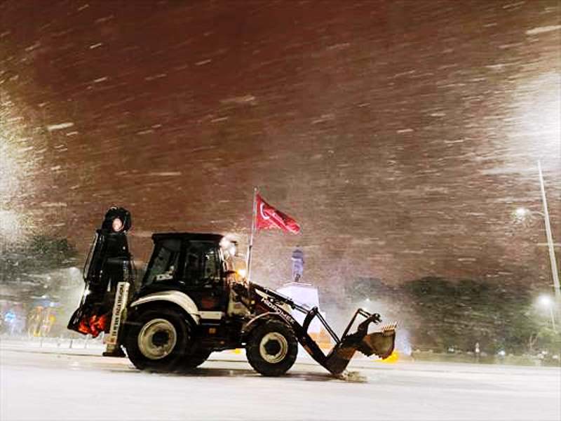 Kapanan yolları trafiğe açabilmek için gece saatlerinde başlayan kar küreme ve tuzlama çalışmaları devam ediyor.