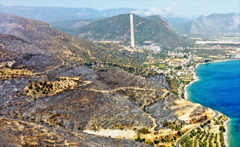 Muğla’nın Milas ilçesinde Kemerköy Termik Santrali’ne kadar yaklaşan yangın, drone ile havadan görüntülendi.