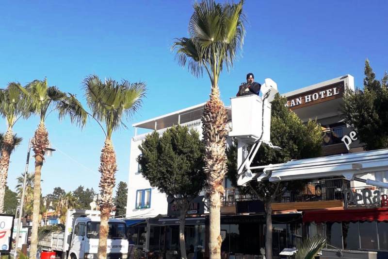 Kırmızı palmiye böceği zararlısı ile mücadele kapsamında başlatılan budama işlemleri, Bodrum ilçe genelinde yaklaşık 6 bin palmiye ağacında uygulanmaya başlandı.